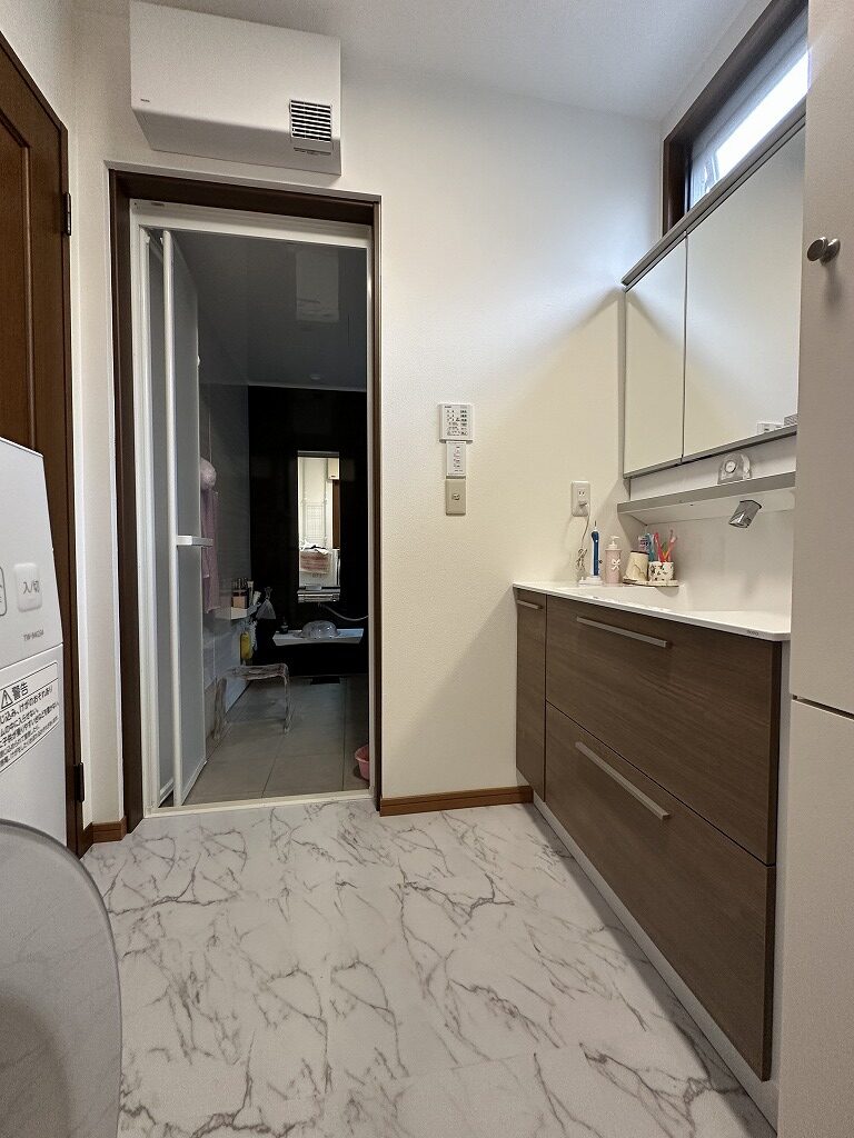 • 脱衣室には、専用暖房機(UBの入り口上部)。浴室内にも浴室暖房機を設置しています