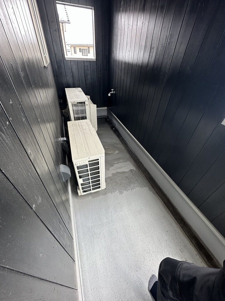 バルコニー防水リフォームしました。室外機がバルコニーにある場合は脱着が必要になることもありますね